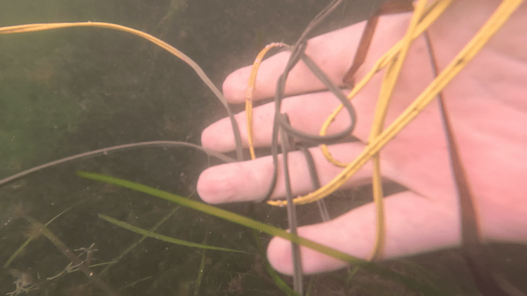 Among the pollution collected from under SeaWorld’s launch barge were yards of wires used for fireworks shows.
