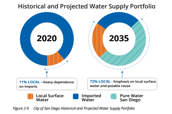 In contrast to the Carlsbad Desalination Plant, the region’s utility-owned wastewater recycling projects like Pure Water San Diego represent a holistic and sustainable response to the region’s water supply and affordability conundrum. They produce local, drought-proof supply that is cheaper to produce, less energy-intensive, and significantly better for the environment than desalination. By 2035, Pure Water San Diego is projected to supply one half of the City’s total water needs, dramatically reducing the City’s reliance on costly imports.