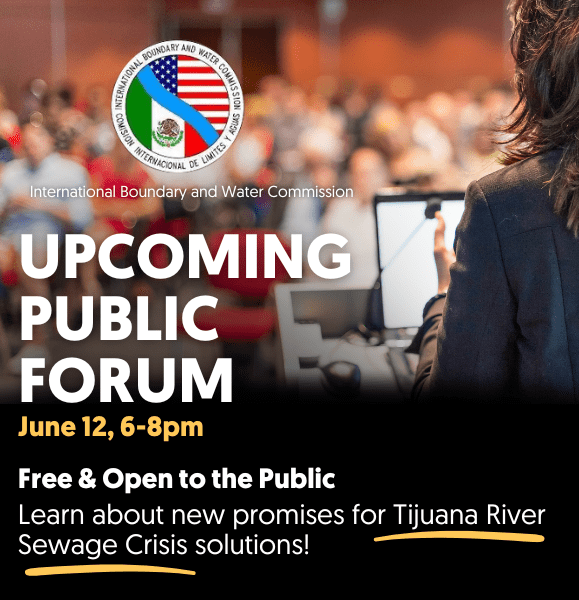 On Thursday, June 12, we will finally get an opportunity to hear from the new leadership at the International Boundary and Water Commission (IBWC) about its plans to address the Tijuana Sewage Crisis. Public outreach from the commission has been silent since Commissioner Giner’s replacement.